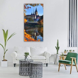 Louny Ohre River Autumn Reflection Vertical Canvas Wall Art