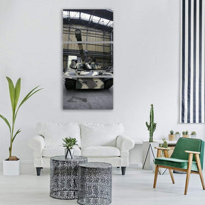 This print centers on a T91 battle tank in a hangar, shown low and powerful with visible workers and overhead lighting. The realistic, industrial palette of grey, green and brown gives the piece a strong presence that fits modern or industrial interiors.