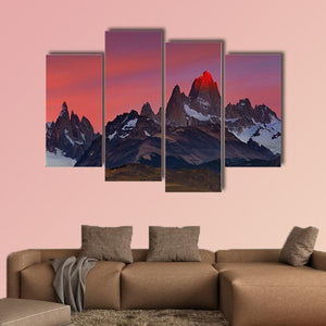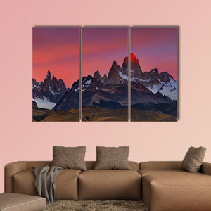 Mount Fitz Roy Canvas Wall Art features snow-capped peaks beneath a vivid sunset sky, with purple, red and orange tones that catch the eye. The piece balances dramatic and serene moods, making it a strong choice for modern or nature-inspired rooms as wall decor.