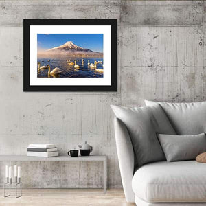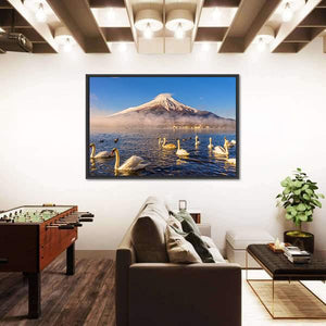 Swans on Misty Lake at Mount Fuji Canvas Wall Art