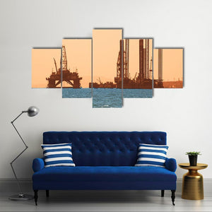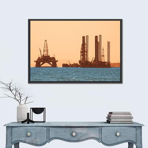 Silhouetted Oil Rigs at Sunset Canvas Wall Art