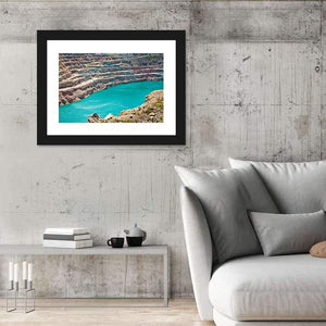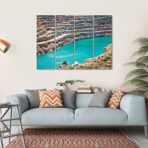This canvas art captures the dramatic beauty of a quarry lake, showcasing striking turquoise water surrounded by layered rock formations. The serene yet vast landscape invites a sense of calm and reflection, making it a stunning addition to your wall décor.