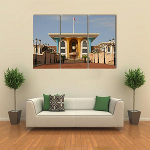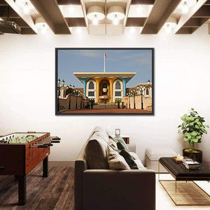 This striking canvas art features the grand Palace of Sultan Al Qaboos in Muscat. With its ornate architecture and symmetrical design, it captures the beauty of Oman, making it a captivating addition to any wall.