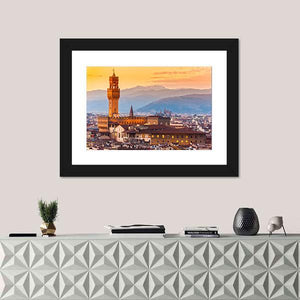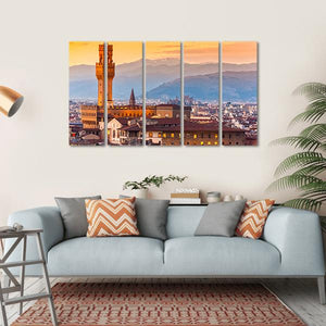 Capture the historic charm of Florence with this stunning canvas wall art featuring the iconic Palazzo Vecchio. The elevated perspective and warm sunset palette evoke a tranquil atmosphere, making it perfect for cityscape enthusiasts.
