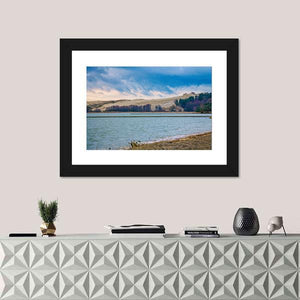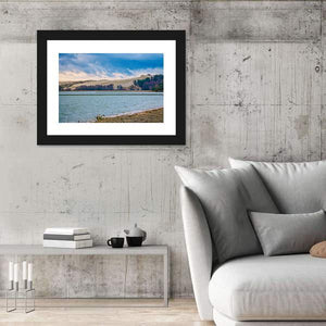 This canvas features a serene winter landscape of Parnidis Dune in Lithuania. The scene captures rolling hills and a reflective body of water under a cloudy sky, inviting a calm and peaceful atmosphere.