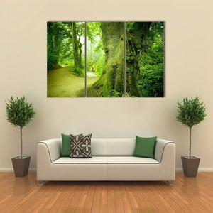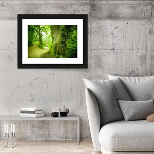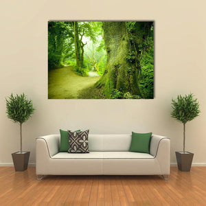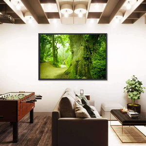 This canvas art features a serene forest path, inviting you to explore its tranquil beauty. With lush greens and deep browns, it perfectly captures the essence of a mysterious landscape, making it an ideal choice for nature lovers.