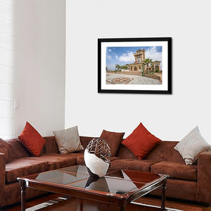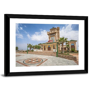 This canvas artwork features a striking landscape of Algeria, showcasing ornate buildings, palm trees, and a clear blue sky. The inviting and sunny mood creates a bright atmosphere, making it a wonderful addition to your home décor.