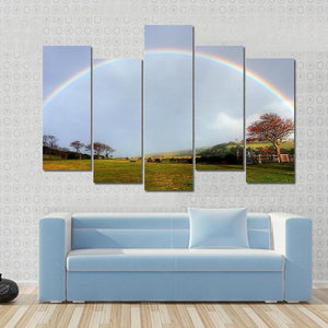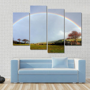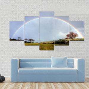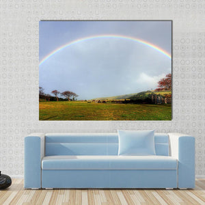 This vibrant canvas features a beautiful rainbow arching over a grassy field, bringing a sense of serenity and hope. The realistic portrayal of nature makes it a perfect addition to any space that seeks to inspire tranquility.