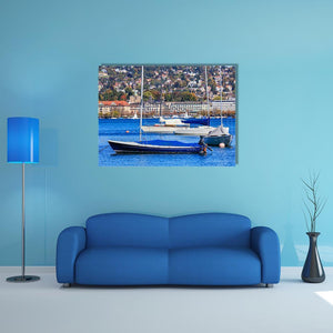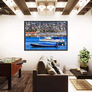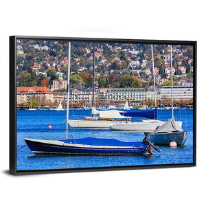 This canvas art features serene sailboats moored on Lake Zurich, surrounded by lush greenery and charming hillside buildings. The peaceful blue water invites a tranquil atmosphere, making it a great fit for any nature-inspired space.