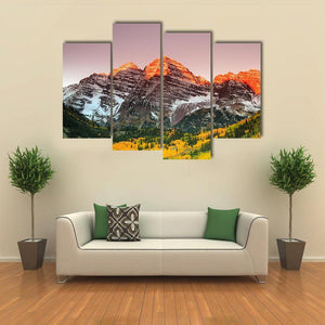 This canvas art features the majestic Maroon Bells mountain range at sunrise, surrounded by vibrant autumn foliage. With rich colors and a serene atmosphere, it perfectly captures the beauty of nature.