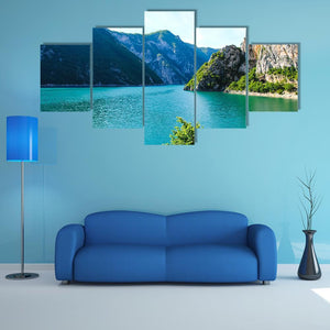 Tara River Flows captures a realistic landscape of turquoise river water winding between rocky cliffs and tree-lined slopes. The rule-of-thirds composition and cool blue-green palette give the scene a serene, majestic, and peaceful mood. Works nicely in modern homes or nature-inspired rooms as a calming focal piece.