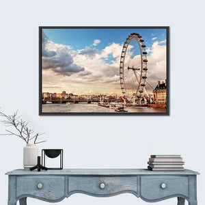 This serene cityscape captures the iconic London Eye amidst the backdrop of the River Thames. With its photorealistic style, this artwork evokes a tranquil atmosphere, making it a wonderful addition to any room.