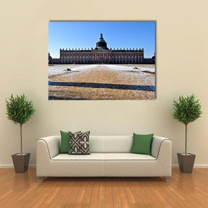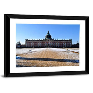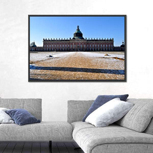 This canvas features the grand Neues Palais in Germany, showcasing its ornate facade and a serene courtyard blanketed in snow. The artwork captures a tranquil moment that's both historic and bright, perfect for enhancing your space with a touch of elegance.