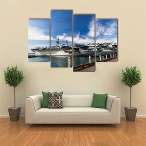 This canvas art highlights the majestic USS Midway aircraft carrier set against a serene backdrop of water and a partially cloudy sky. The realistic details and calming blue tones make it a thoughtful addition to any space.