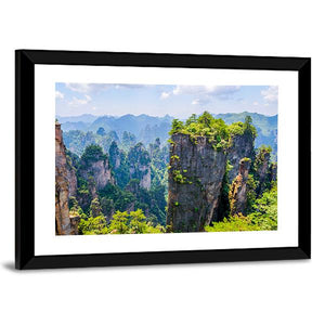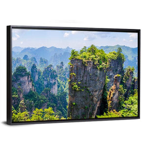 This canvas artwork captures the majestic view over tall sandstone columns and formations in Zhangjiajie, showcasing the natural beauty of rock formations, mountains, and lush greenery under a serene blue sky. Perfect for nature lovers and an inspiring focal point in any space.