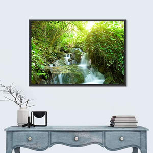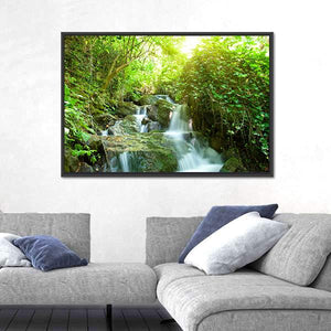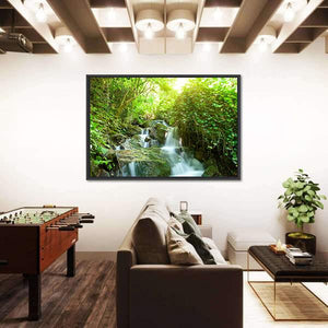 Bring a serene touch of nature into your home with this beautiful canvas featuring a tranquil waterfall surrounded by lush foliage. The realistic style captures sunlight filtering through the trees, creating a peaceful atmosphere that complements any décor.