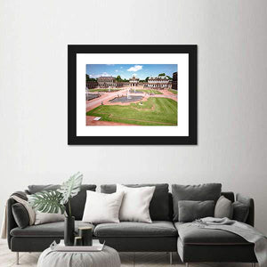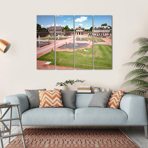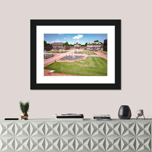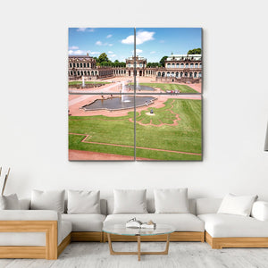 This canvas art captures the grandeur of Zwinger Castle in Dresden, featuring its beautifully manicured gardens, fountains, and impressive arched architecture. With a rich palette of greens, browns, and blues, it brings a serene yet majestic atmosphere to any space.