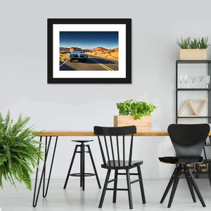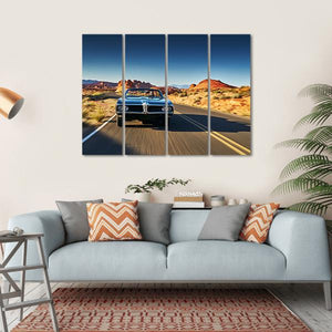 Capture the adventurous spirit of the open road with this vintage canvas featuring a classic convertible cruising down a desert highway. The warm palette of blues, browns, and yellows evokes a nostalgic atmosphere, inviting the viewer to reminisce about journeys through stunning landscapes.