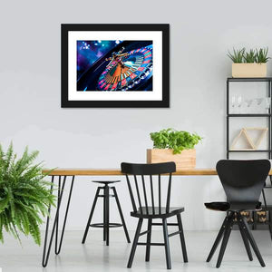This canvas art features a vibrant, close-up view of a roulette wheel, showcasing a captivating blend of colors like blue, red, gold, and orange. The exciting atmosphere is further enhanced by visible numbers and an angled perspective, making it a luxurious addition to your decor.