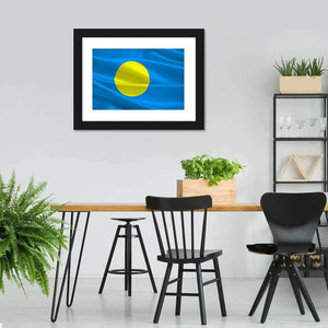 Flag Of Palau Canvas Wall Art shows the Palau flag in a simple, symmetrical composition of blue and yellow. The flag is shown with a slight wave, giving a quiet, patriotic feel. Its modern look suits contemporary homes and room decor.