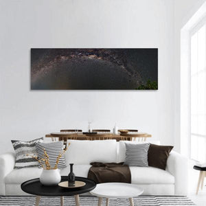 A panoramic, photorealistic view of the Milky Way at night, showing the galaxy’s arc, a dense star field, and hints of nebulae in a palette of black, white, grey, brown, and gold. The piece carries a vast, serene mood and suits modern or minimalist rooms as wall decor.