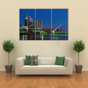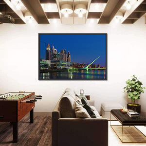 This canvas features a captivating night scene of the Puerto Madero neighborhood, showcasing a city skyline, a modern bridge, and shimmering reflections on the water. The urban and serene vibe adds a touch of contemporary charm to your space.