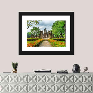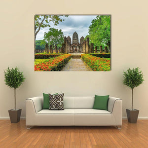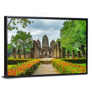 Experience the serene beauty of ancient ruins depicted in this canvas. Featuring lush gardens, stone pillars, and a peaceful pathway, this artwork brings a touch of historic charm to your space.