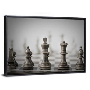 This captivating canvas art showcases the intricate details of chess pieces and a chessboard, set in a harmonious blend of brown, gray, and white tones. The strategic and classic atmosphere invites contemplation and makes it a thoughtful addition to any space.