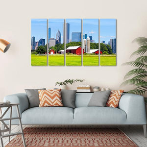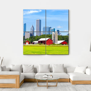 Experience the serene beauty of farm life with our American Red Farm Canvas Wall Art. This vibrant piece features a stunning contrast of modern skyscrapers against lush green fields and red barns, creating a bright atmosphere that welcomes viewers. Perfect for any room where you want to invite a touch of nature.