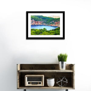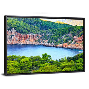 Experience the serene beauty of Antalya with this captivating canvas wall art. It features a picturesque scene of rocky cliffs, dense green trees, and calm blue ocean waters, creating a natural oasis for your space.