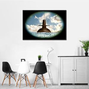 This striking piece captures a tense and watchful periscope view over the ocean, bringing a dramatic military theme to your space. The blend of blue and gray hues creates a powerful atmosphere that complements modern decor beautifully.