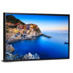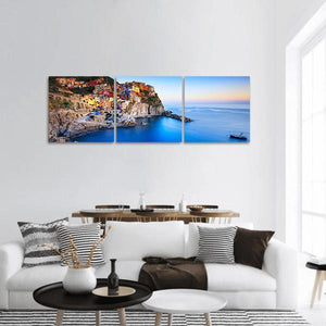 Capture the serene beauty of Manarola, a charming coastal town in Italy, with this panoramic canvas wall art. Featuring vibrant colors and a picturesque view of colorful buildings against a backdrop of cliffs and calm water, this piece brings a touch of nature into your home.