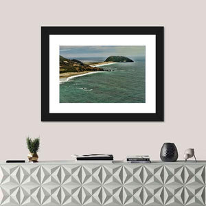 Capture the serene beauty of the Pacific Ocean with this stunning canvas art. Featuring a wide shot of the coastline, this piece reflects the natural hues of green, blue, and tan, along with the distinctive lighthouse on a distant headland. Ideal for those who appreciate the vast beauty of California's landscape.
