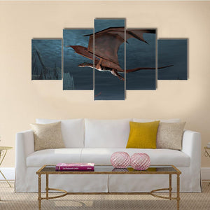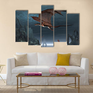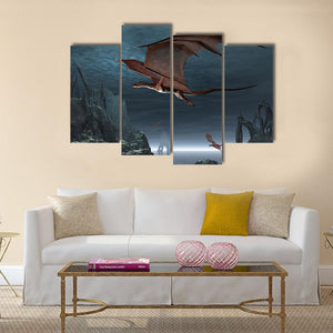 Red Dragons Flying Canvas Wall Art shows large dragons in flight above rocky islands and a stormy ocean, creating a mystical and dramatic atmosphere. The fantasy landscape works well in modern or fantasy-inspired rooms as an adventurous focal point.