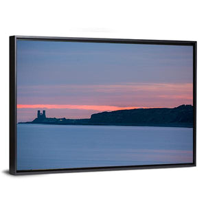 Sunrise Over Herne Bay in England depicts castle‑like coastal ruins beside a calm ocean beneath a pink, blue and purple sunset sky. The minimalist, modern composition and long‑exposure water create a serene, contemplative mood that suits living rooms, bedrooms, or entryways.