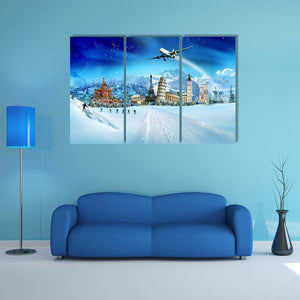 This vibrant canvas captures iconic landmarks set against a serene winter landscape. Evoking a sense of adventure, it's perfect for adding charm and color to any room.