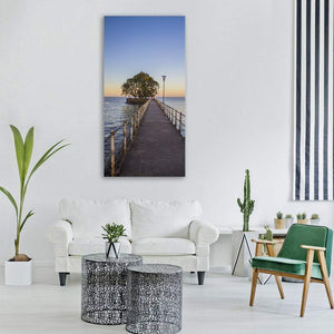 Pier Leading to Island Tree at Sunset Vertical Canvas Wall Art