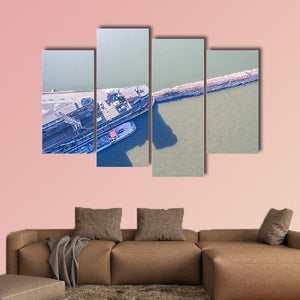 Aerial Harbor with Two Docked Ships Canvas Wall Art