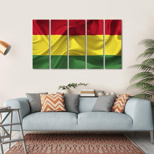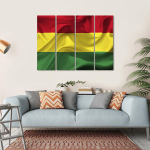 Celebrate your pride with the Bolivia Waving Flag Canvas Wall Art. This vibrant piece features red, yellow, and green tones that embody a patriotic spirit. Its symmetrical design and wavy fabric texture bring a modern touch to any space.