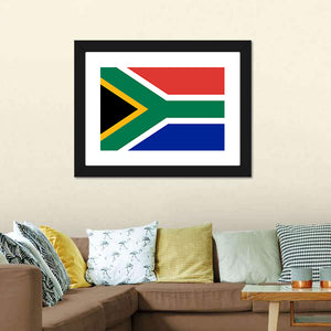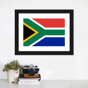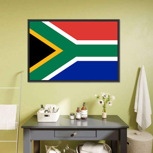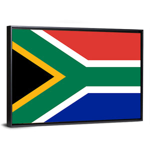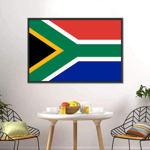 Showcasing the bold and colorful South African flag, this canvas print evokes a sense of patriotism. Its striking design features a distinct Y shape with vibrant shades of red, green, and blue, making it a captivating addition to your wall decor.