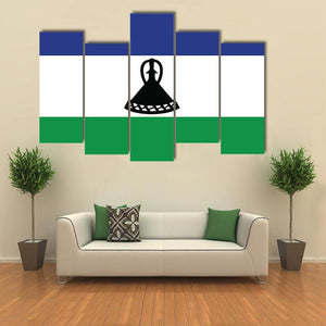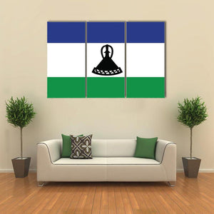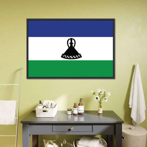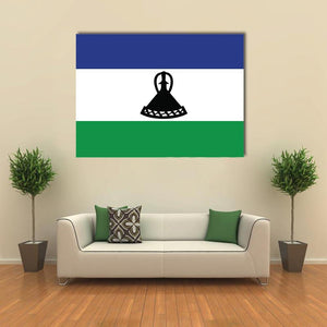 This canvas shows the national flag of Lesotho in a symmetrical, modern composition featuring the black mokorotlo hat and a bold blue, white, and green palette. Its clean, contemporary look suits modern homes and room decor and gives a nationalistic, confident mood.