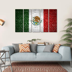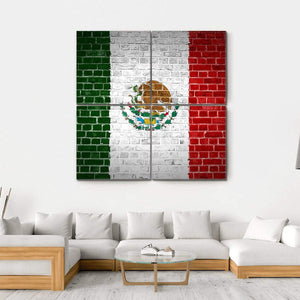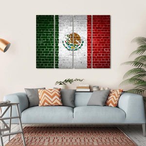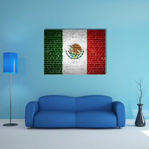 This canvas art features the Mexican flag boldly printed on a textured brick wall. The vibrant palette of green, white, and red, along with earthy brown and gold, creates a patriotic and graphic statement piece for your wall decor.
