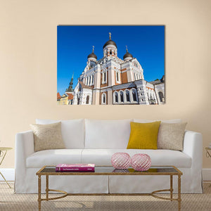 This canvas art features the grandeur of the Alexander Nevsky Cathedral in Tallinn, showcasing its ornate facade and majestic domes. The serene and historic atmosphere, complemented by a rich palette of white, brown, blue, and gold, makes it an exquisite addition to any cityscape collection.