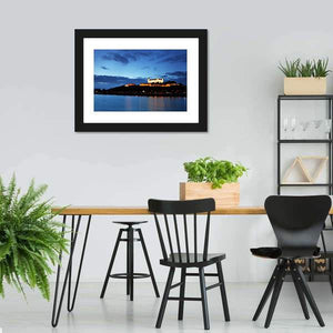 This enchanting canvas features the majestic Bratislava Castle illuminated against a twilight sky, nestled above a serene river. The glowing windows and dramatic clouds evoke a peaceful yet captivating atmosphere, adding a touch of urban elegance to your decor.