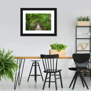 This canvas features a hanging bridge nestled in a lush jungle. With its rich greens and natural tones, it evokes a sense of adventure and peace, inviting you to explore the serene beauty of nature.