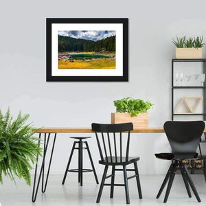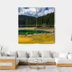 Capture the serene beauty of Italy's Carezza Alpine Lake with this canvas wall art. Featuring lush green forests, rocky shores, and a tranquil lake under a cloudy sky, it brings a touch of nature’s peace to your space.