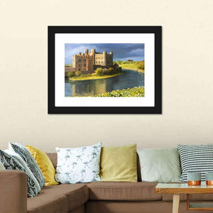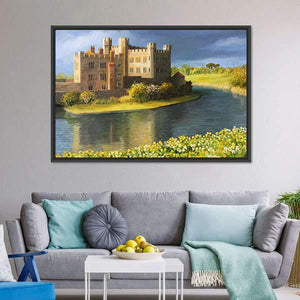 This canvas art features a picturesque castle nestled in the serene English landscape, with lush trees and colorful flowers that line the tranquil water's edge. The stormy sky adds a dramatic touch, perfect for bringing a sense of history and calm to your space.