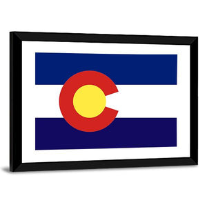 This abstract canvas reimagines the Colorado flag as a centered, symmetrical composition with a stylized ‘C’ and concentric circles in blue, white, red, and yellow. The piece reads bold and geometric yet clean, making it a good fit for modern or minimalist rooms and contemporary offices.