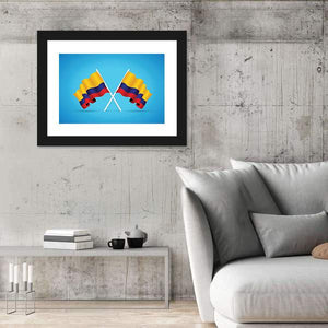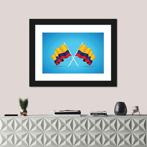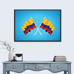This dynamic artwork features two Colombian flags in a bold, symmetrical design. With vibrant shades of blue, yellow, and red, it captures a patriotic spirit that resonates in any space.