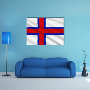 This canvas wall art beautifully showcases the flag of the Faroe Islands. Featuring a bold red cross outlined in blue set against a clean white background, it embodies a patriotic spirit and adds a sense of pride to any space.